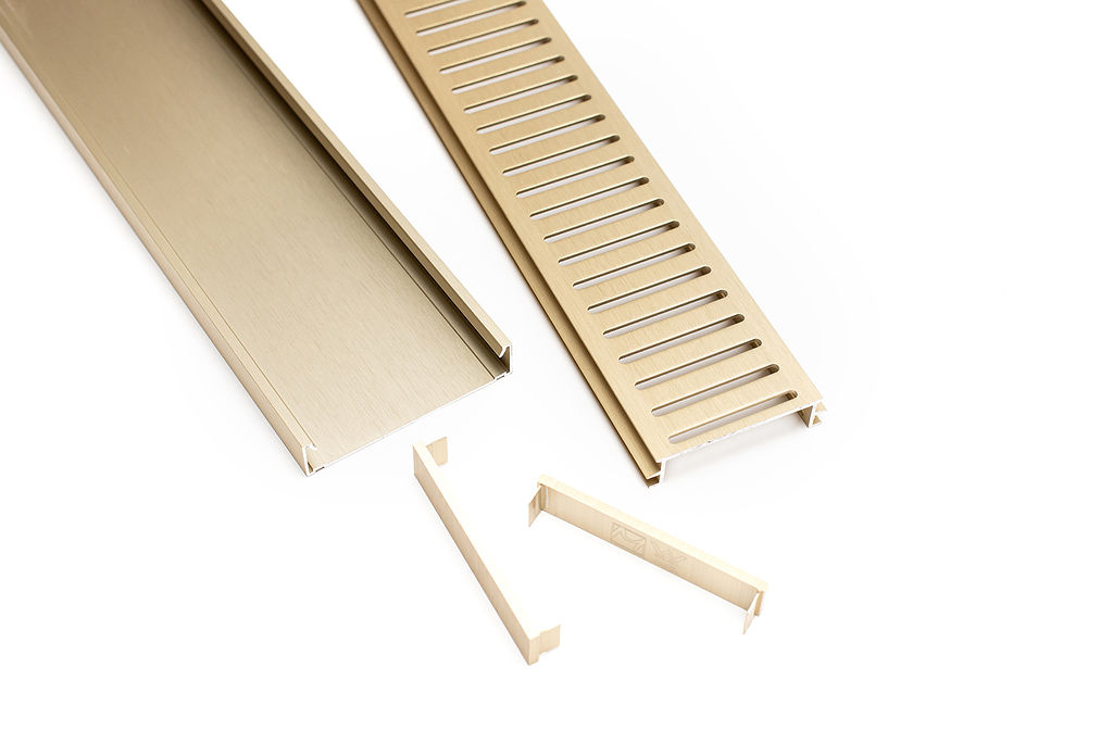 Custom Made Aluminium Slotted Grate Drain 21mm – Gold