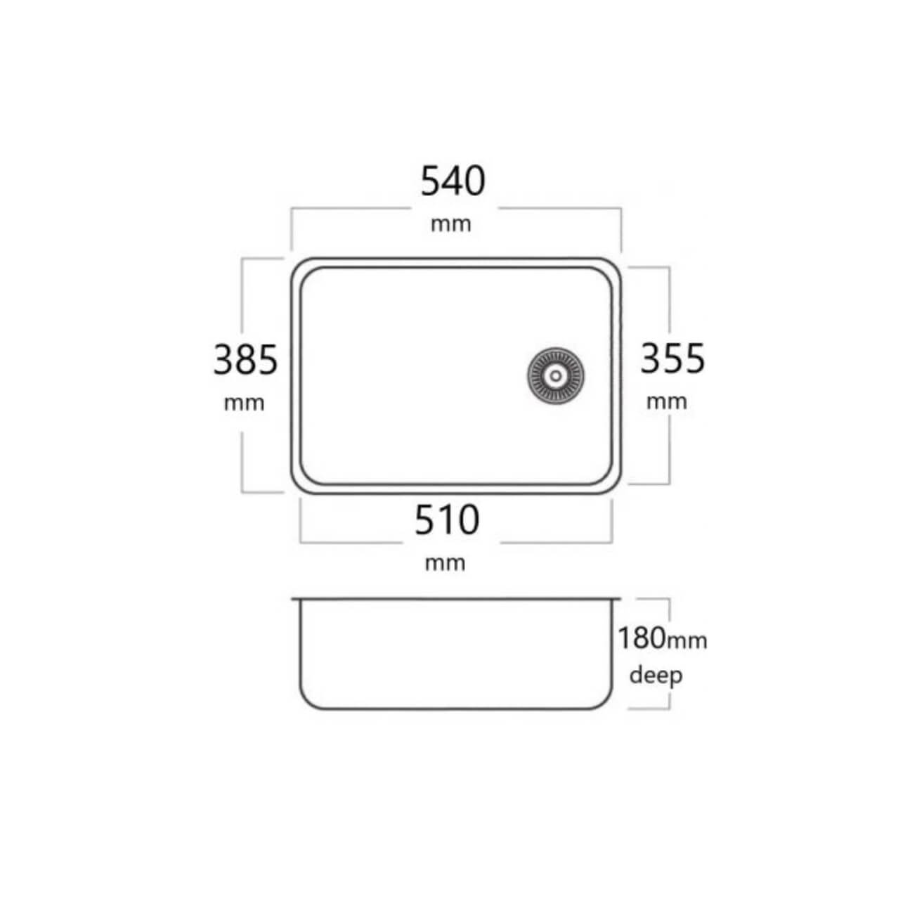 Measures: 510mm x 355mm and has a depth of 180mm.