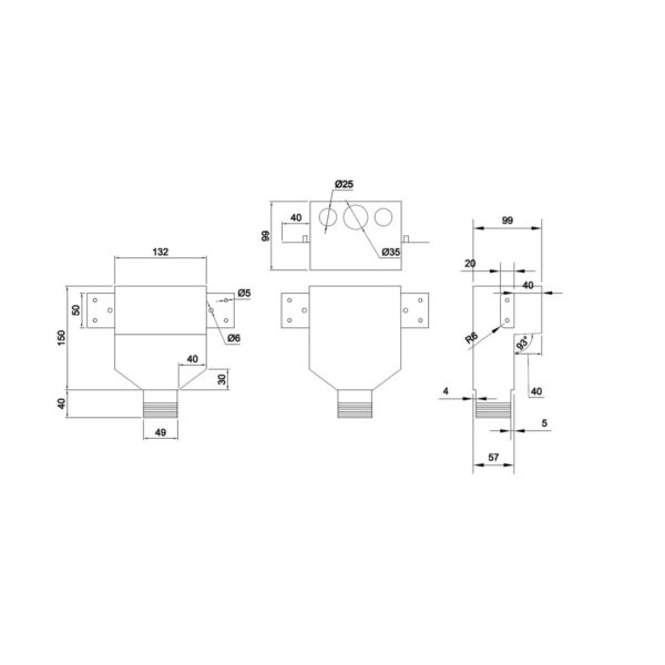 Inlet size: (3 hole) 25 x 35 x 25mm.
